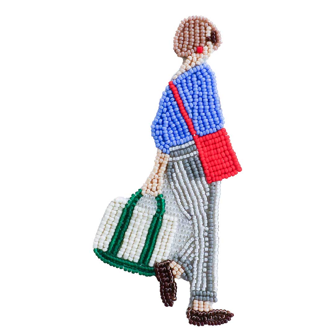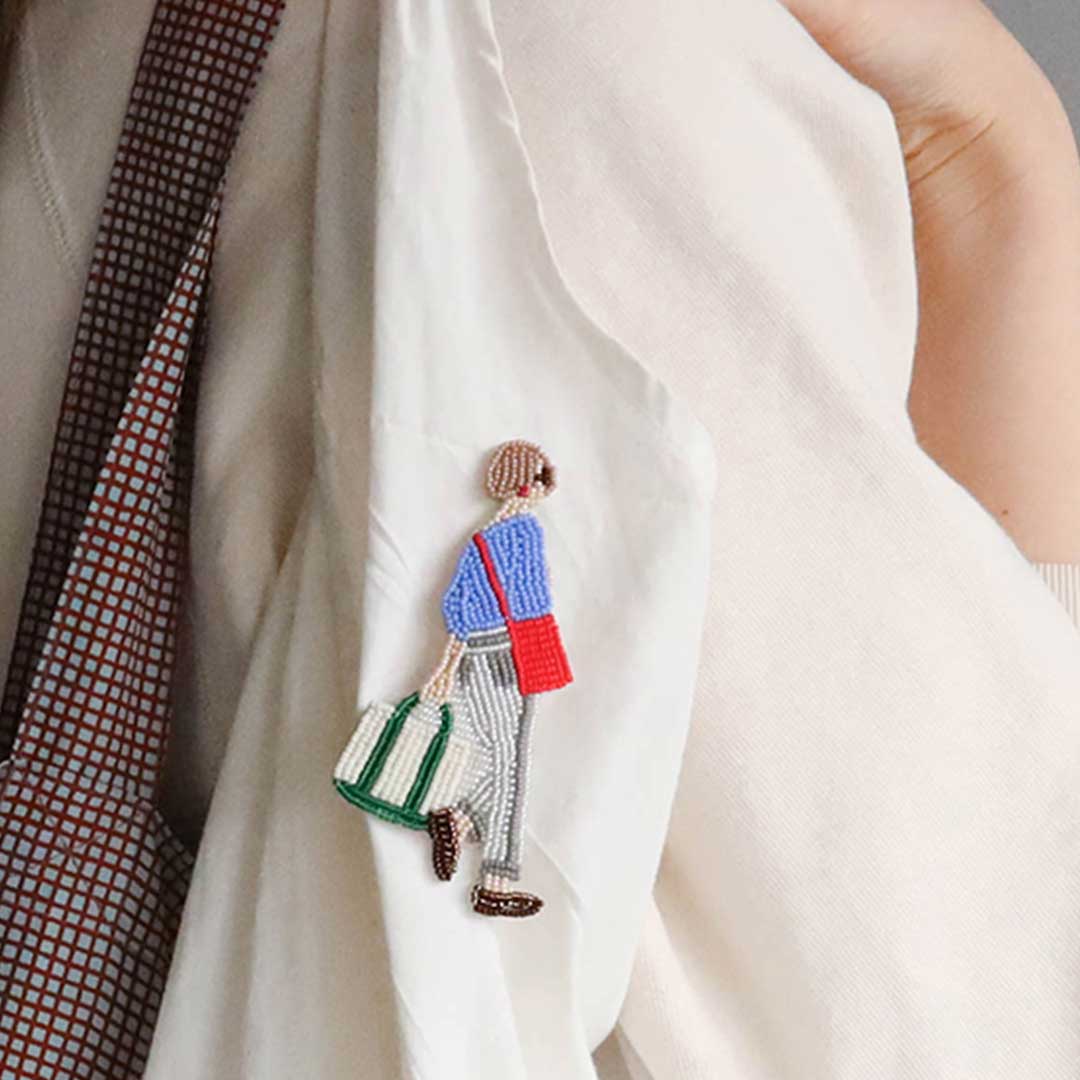 【キット作り方つき】女性たちの軽やかな休日をモチーフにした、ビーズ刺しゅうのブローチ新作3種。図案印刷済みフェルトに直接刺して作ります。すぐに作り始められる糸・針つきのキットです。