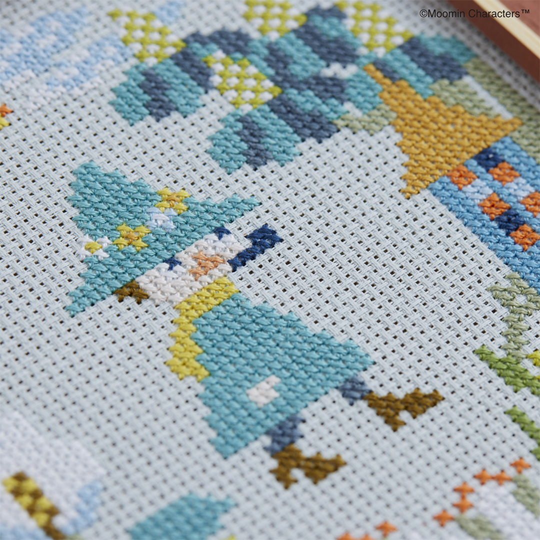 ムーミン クロスステッチシリーズで初めてとなるミニサイズのクロスステッチは、布のカウント数も14カウントと今までよりも布目が大きく、初めての方でも挑戦しやすい大きさです。
