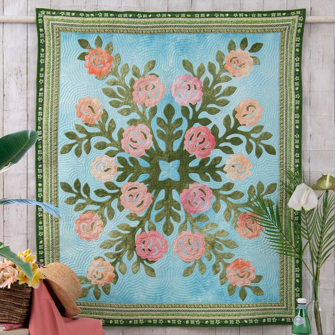 【キット作り方つき】ラハイナの町に咲くロケラニをイメージした、明るく華やかなデザインです。アップリケ布が全てカット済みなので、大きめサイズでもスムーズに作り始められます。