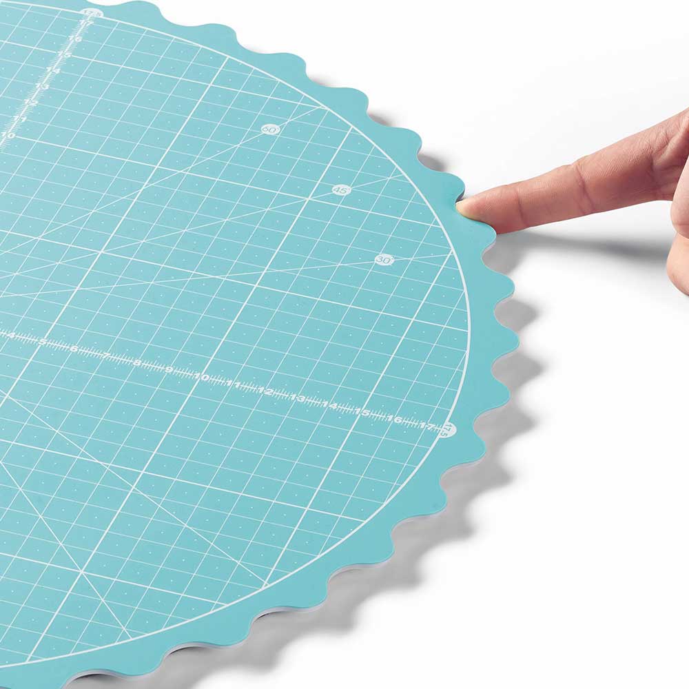 楽な角度や姿勢を保ったままカットできる、回転式カッティングマットです。便利な1cm方眼と30・45・60・90度のガイドつき。