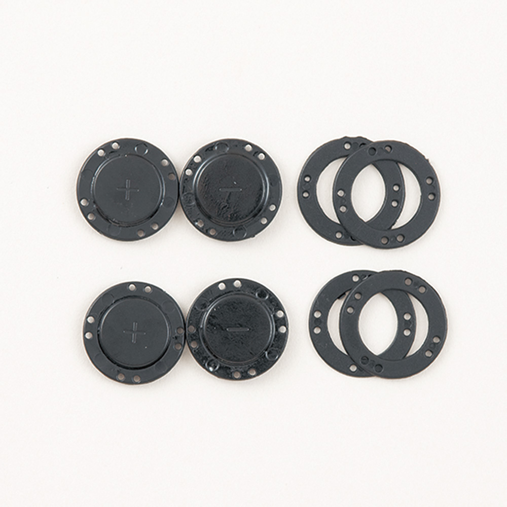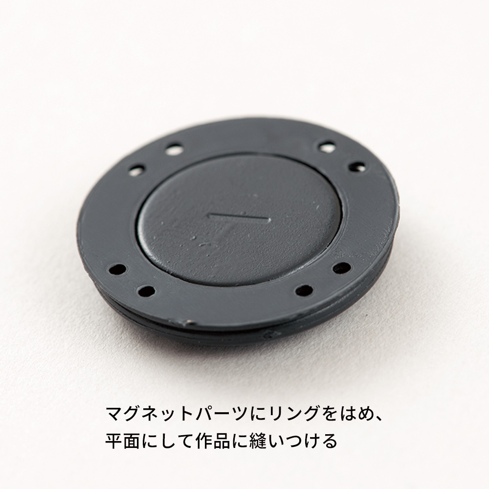 仕上げた後に縫いつけるマグネットボタン。強力な磁力で、包みボタン風に布で覆っても吸着します。小物に便利な小サイズ2個セットでお届けします。