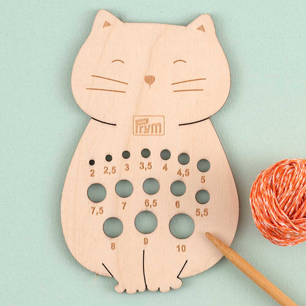 編み針の太さを図る便利なゲージ。反りが少なく正確に測れるバーチ材を使用しています。型抜きをすると、可愛らしいネコ形に。編み物仲間へのプレゼントにもお勧めです。