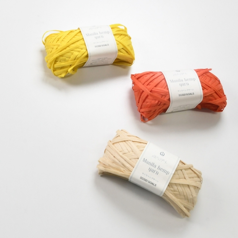糸はマニラ麻100%の天然素材です。マニラ麻を紙のように梳いてテープ状にカットし、撚り加工と撥水加工を施しています。 とても柔らかくて軽いので帽子やバッグ、かご作りにも最適です。