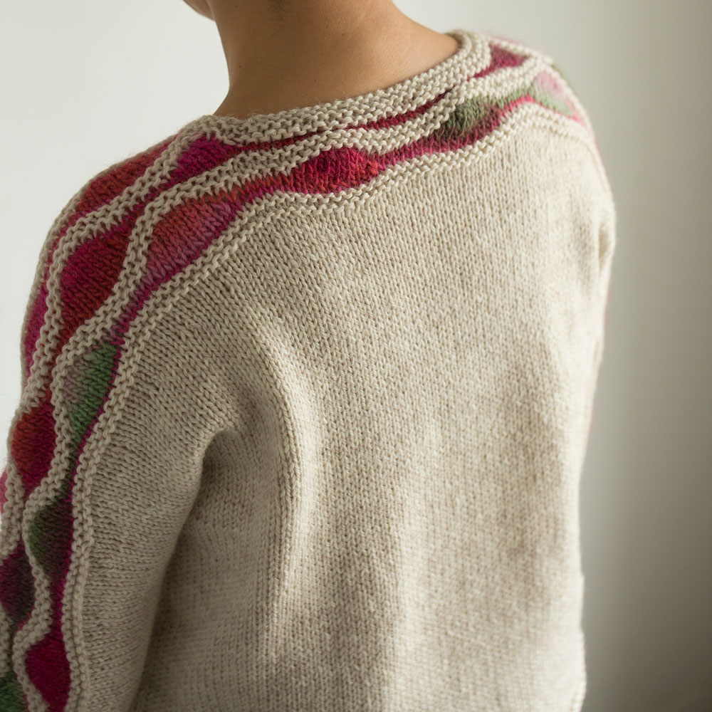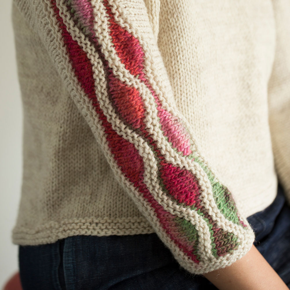ナミナミ模様は“W&T”こと、ラップアンドターンのひき返し編みで。英文パターンといえばコレ!という技法をたっぷり練習できるレシピです。