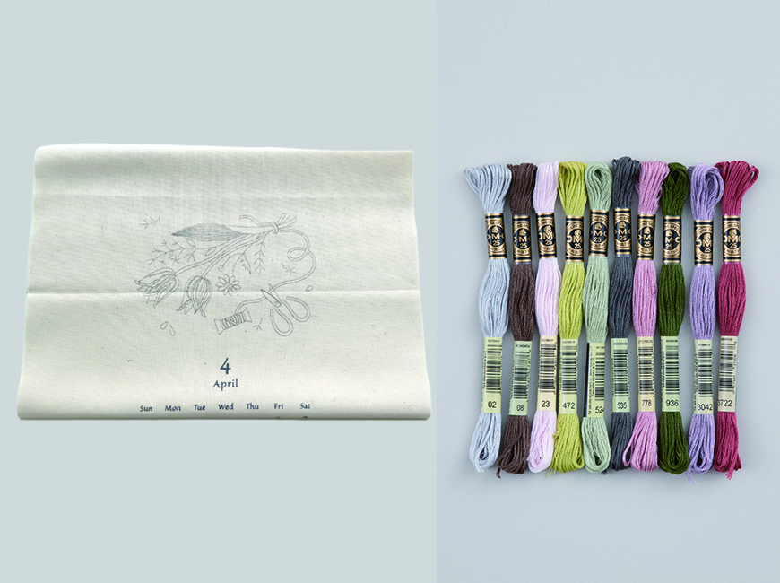 2022年度に販売していた『刺しゅうカレンダー2022』の人気作家さんの刺しゅうを楽しめる布と刺しゅう糸のキットです。刺しゅう図案付き。