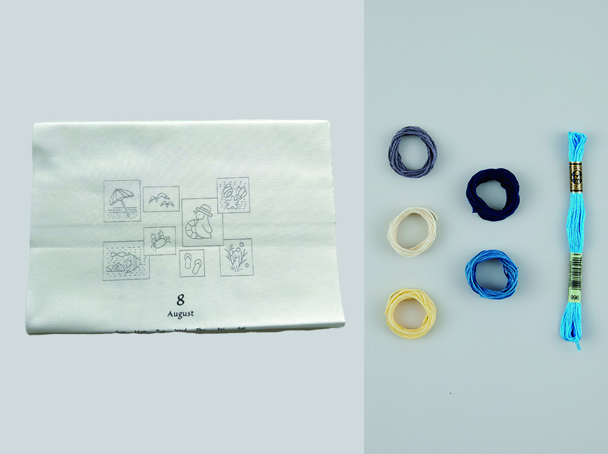 2022年度に販売していた『刺しゅうカレンダー2022』の人気作家さんの刺しゅうを楽しめる布と刺しゅう糸のキットです。刺しゅう図案付き。