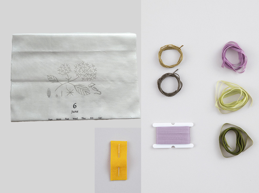 2022年度に販売していた『刺しゅうカレンダー2022』の人気作家さんの刺しゅうを楽しめる布と刺しゅう糸のキットです。刺しゅう図案付き。