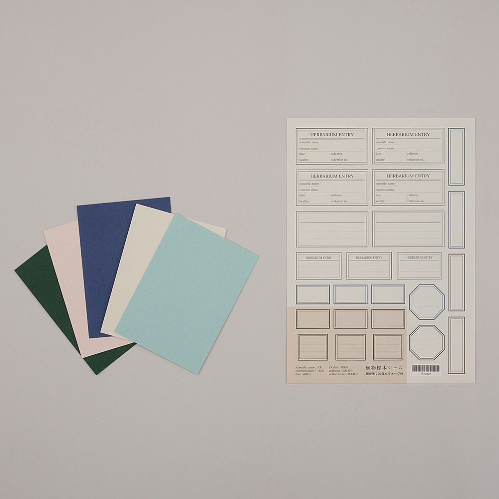 押し花によくあう落ち着いたカラーのポストカード。 標本シールはスリット入りで使いやすく、弱粘着タイプなのでガラスに貼ってもきれいに剥がせます。