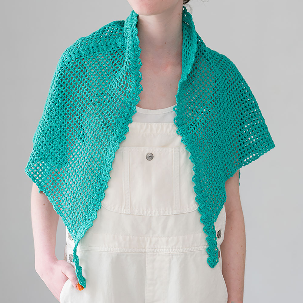 鎖編み、細編み、長編みの基本的な技法だけで編めるかぎ針のショール。ところどころヒラッと伸びた模様編みが「ジェリーフィッシュ=くらげ」のようで可愛いデザインです。色鮮やかで、夏のシンプルなファッションのポイントにぴったりです。