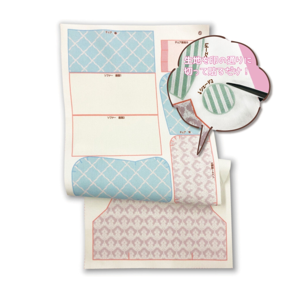 生地に型紙がプリントされているので、印の通りに切って貼るだけ。