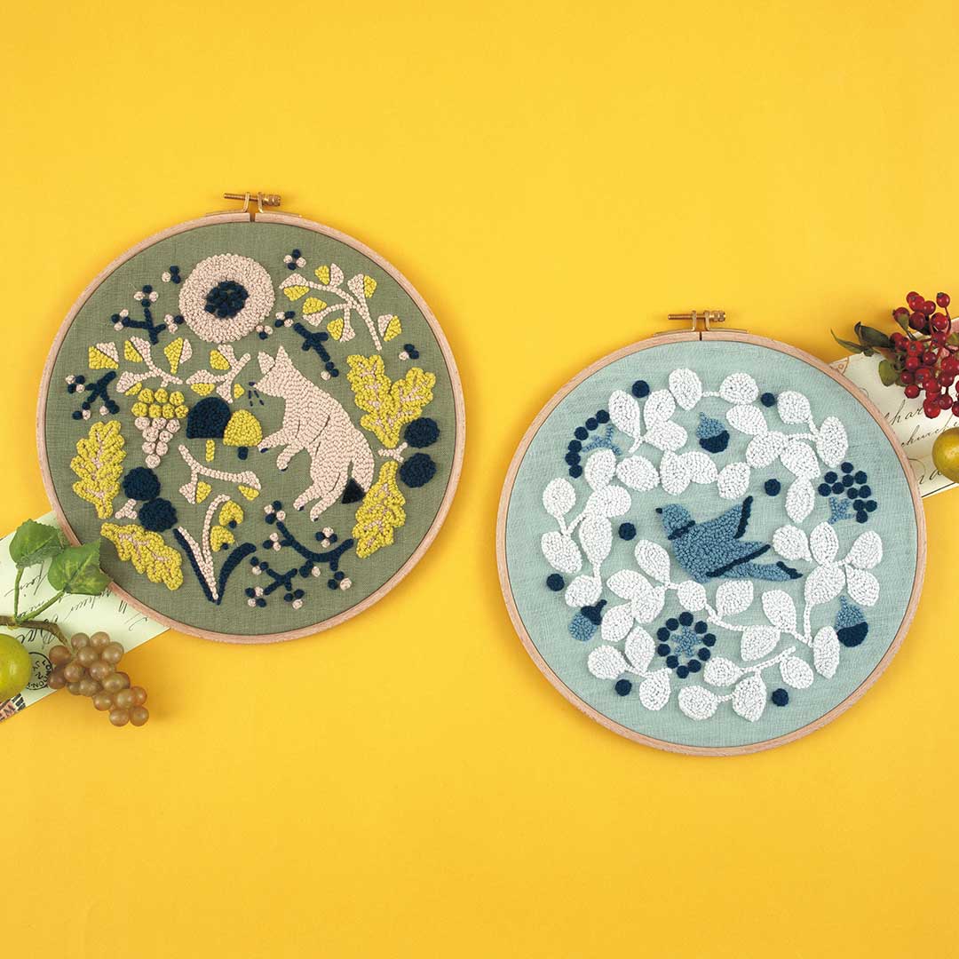【キット作り方つき】自然の風景を基にしたモチーフを、パンチニードルに適した構図でデザインしたシリーズです。[キツネ]は森を歩くキツネの視点で描き、[バード]は点と線模様製作所の代表的な柄のひとつをアレンジ。別売りの「パンチニードルペン」で刺し、付属の刺しゅう枠のまま飾れます。