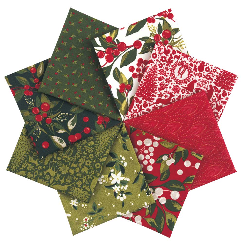 [USA] 冬らしい小花やベリー、クリスマスシーンを描いた単色のプリントなど、赤と緑でコーディネートされたクリスマスカラーのカットクロスっセットです。。