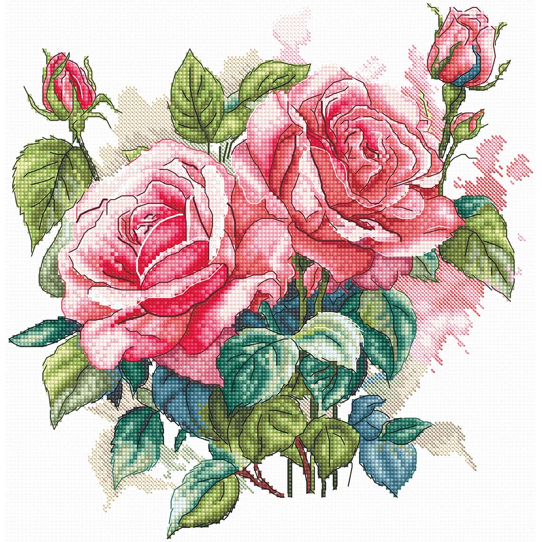 【キット作り方つき】エレガントな2輪のバラをを描いたクロスステッチ作品。中~上級の方向け。イギリスのLETISTITCH社製(レティーステッチ)。