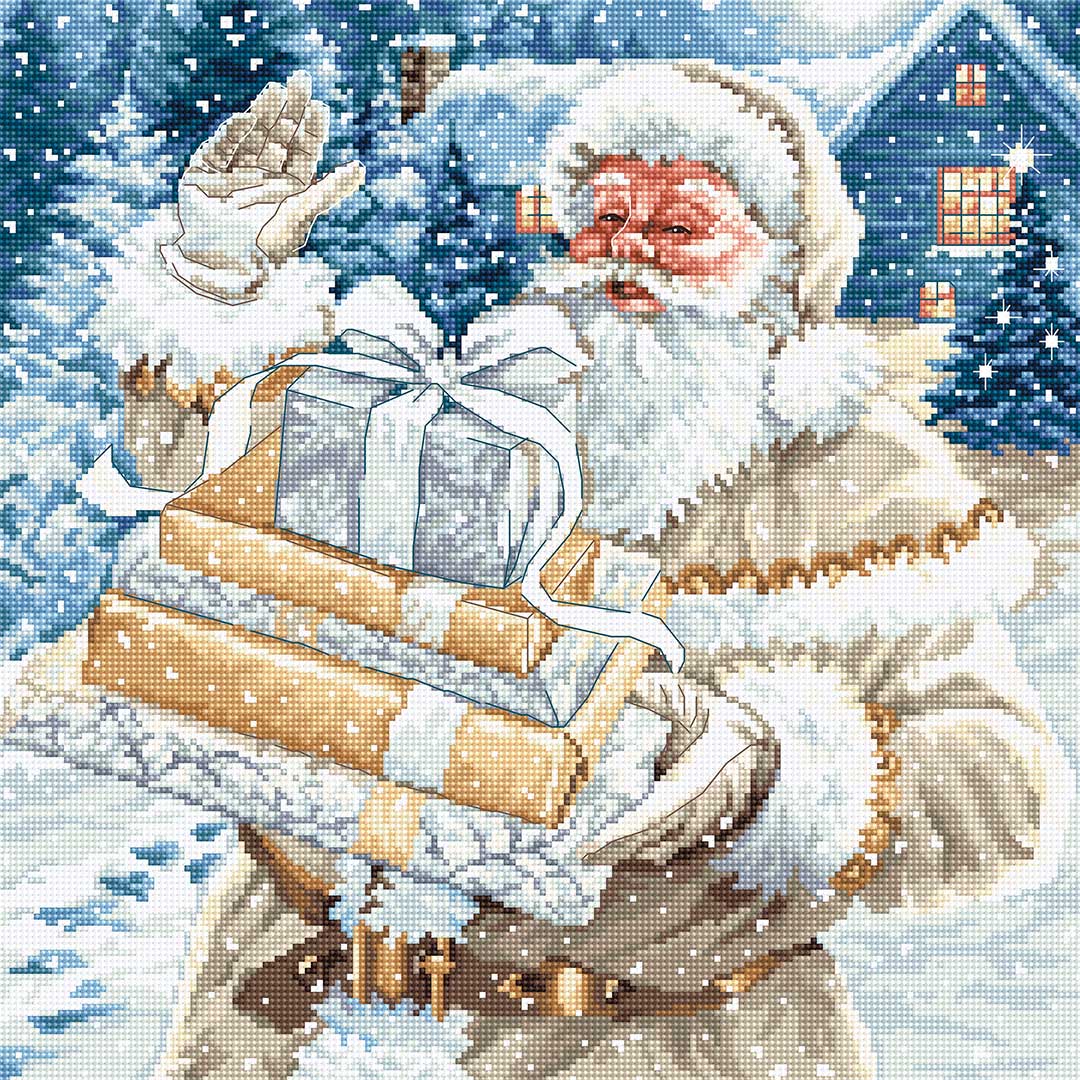 【キット作り方つき】プレゼントをたくさん抱えた、白い衣装を着たサンタクロースを描いたクロスステッチ作品です。上級の方向け。Luca-S社製。(モルドバ)