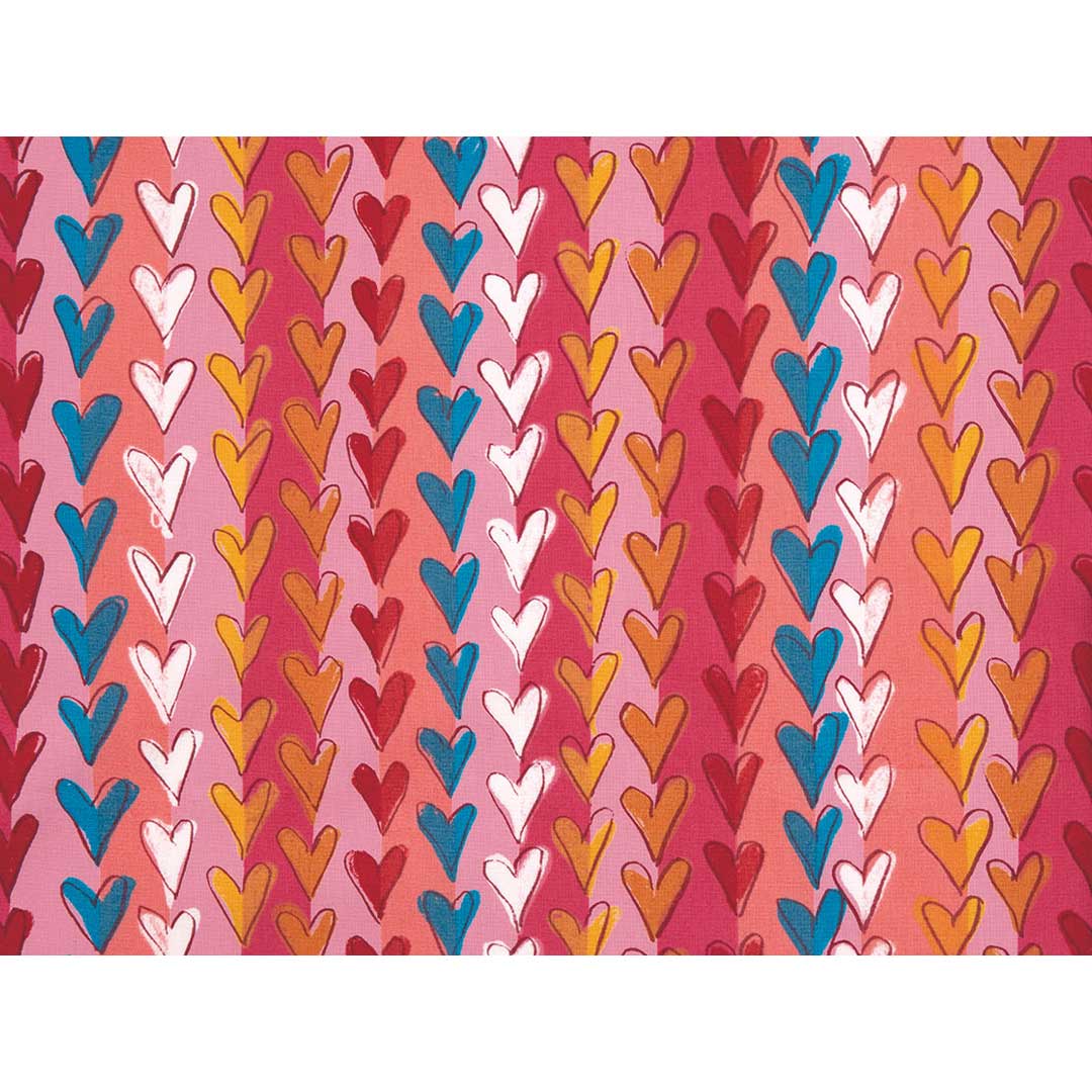 郷家啓子さんデザイン。手描きのハートをストライプ状に並べ、ピンクのグラデーションになった可愛らしいプリントです。バッグなどに。