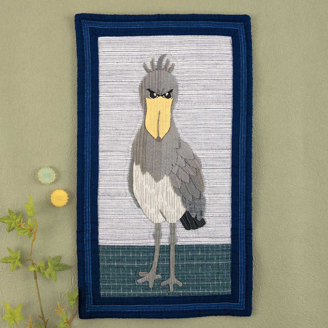 【キット作り方つき】動かない鳥で有名なハシビロコウをアップリケ。本物のように存在感のある仕上がりです。
