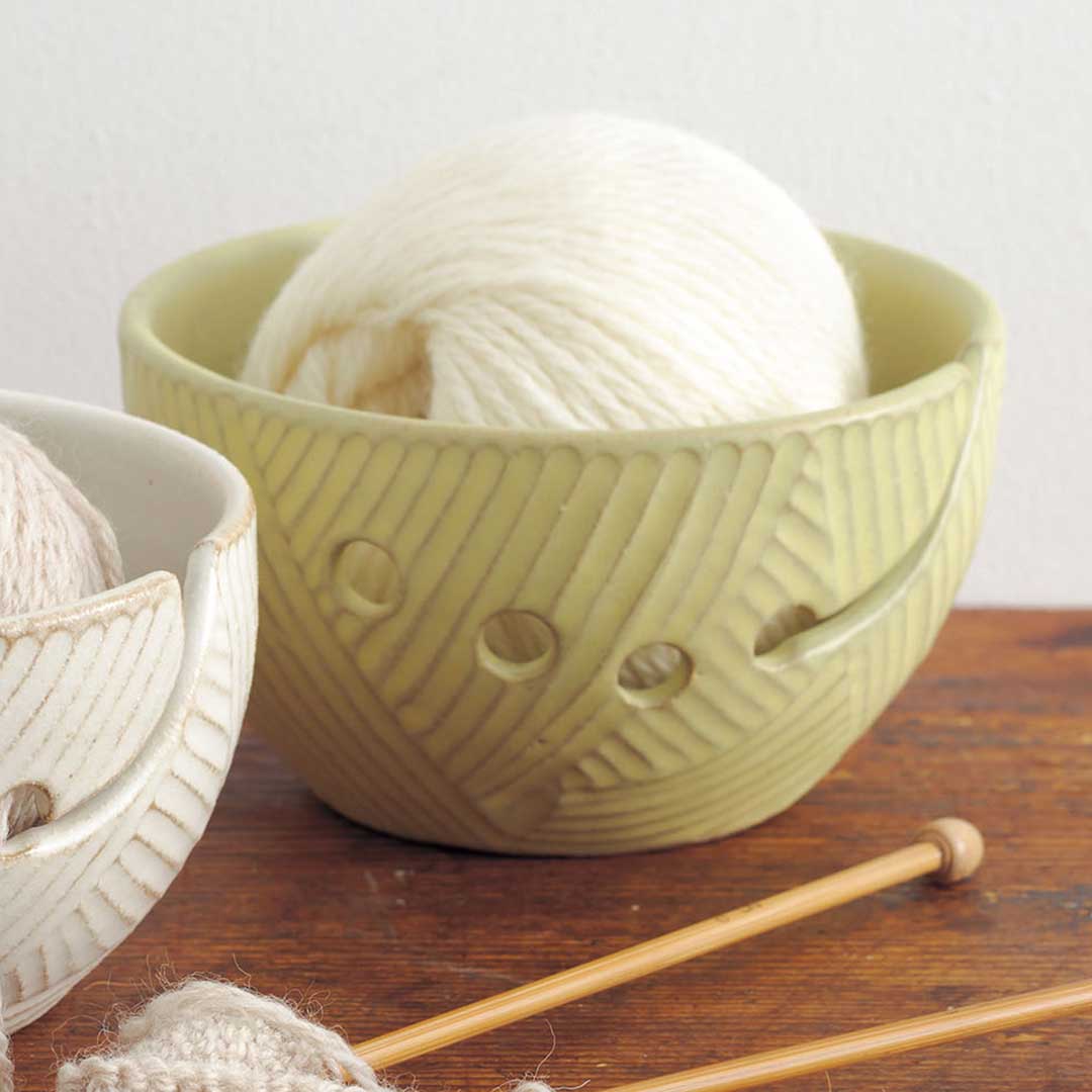 【限定】表面に毛糸玉の模様を入れた、益子焼のヤーンボウルを2色ご用意しました。インテリアとして飾っても素敵な風情溢れる雰囲気です。