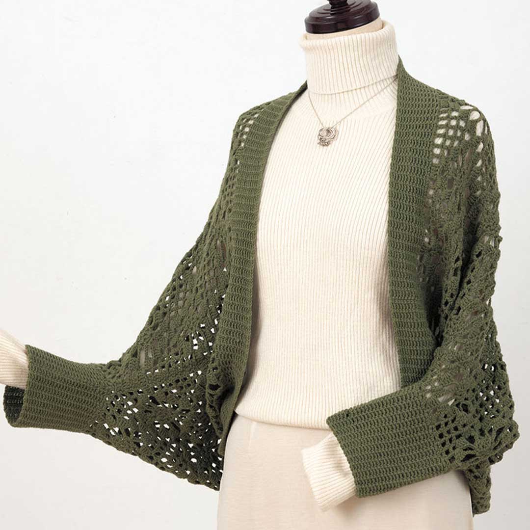 【キット・作り方つき】ワイドな身幅とゆったりとしたドルマ ンスリーブに、引き締めた袖口で華奢に見せるデザインのボレロ。中級の方向きウエアです。