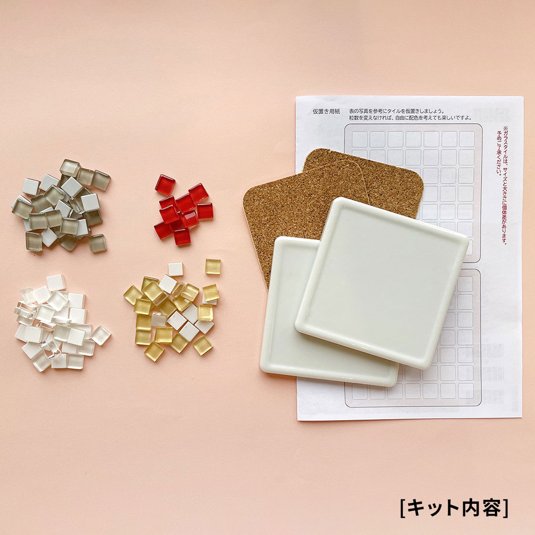 お茶の時間のお友になるタイルクラフトのコースターが2枚つくれるキットです。