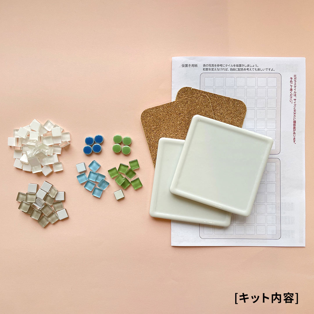 お茶の時間のお友になるタイルクラフトのコースターが2枚つくれるキットです。
