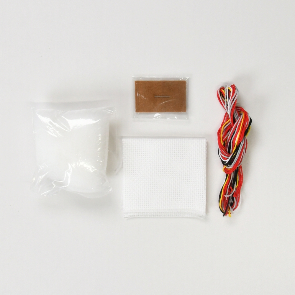 クロスステッチ布( グラツィアーノアイーダ14カウント) 、25番刺しゅう糸、手芸わた、クロスステッチ針(24番)、作り方説明書