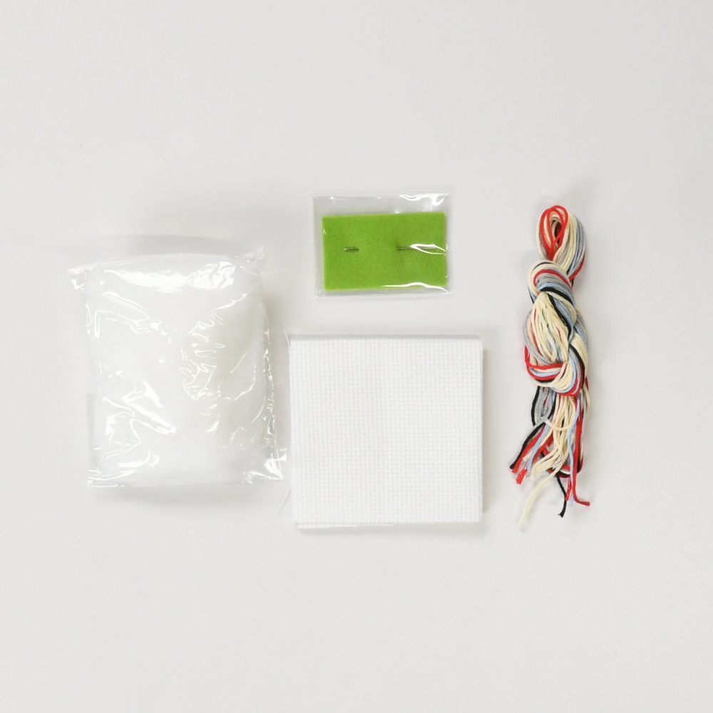 クロスステッチ布( グラツィアーノアイーダ14カウント) 、25番刺しゅう糸、手芸わた、クロスステッチ針(24番)、作り方説明書