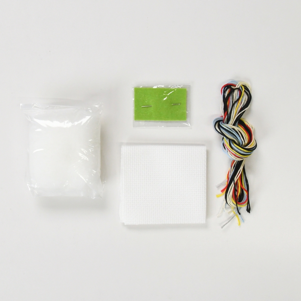 クロスステッチ布( グラツィアーノアイーダ14カウント) 、25番刺しゅう糸、手芸わた、クロスステッチ針(24番)、作り方説明書