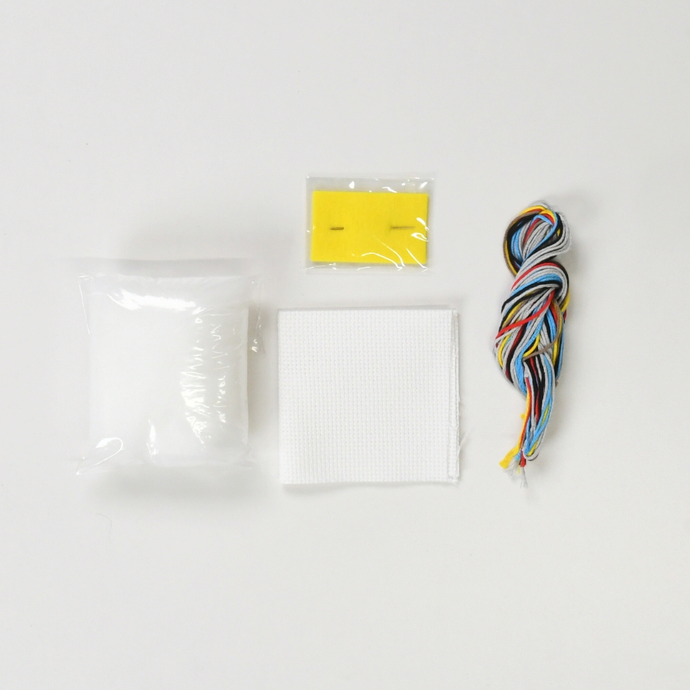 クロスステッチ布( グラツィアーノアイーダ14カウント) 、25番刺しゅう糸、手芸わた、クロスステッチ針(24番)、作り方説明書