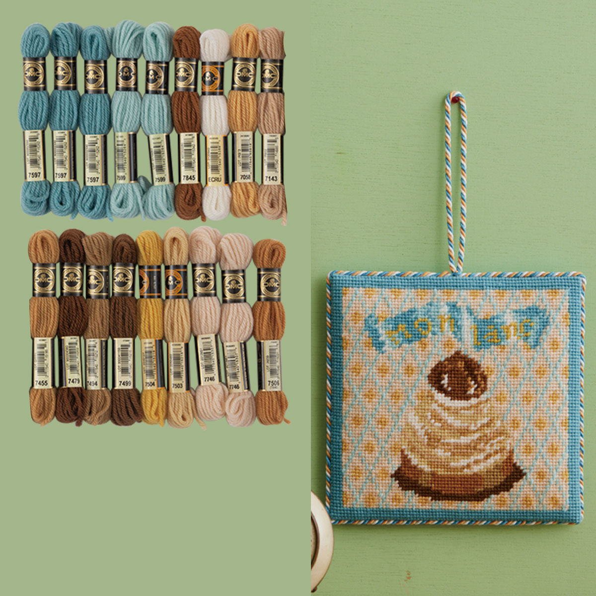 ステッチイデーvol.43 45ページ掲載の作品に使用している、ピュアバージンウール100%のDMCタペストリーウール糸のセットです。