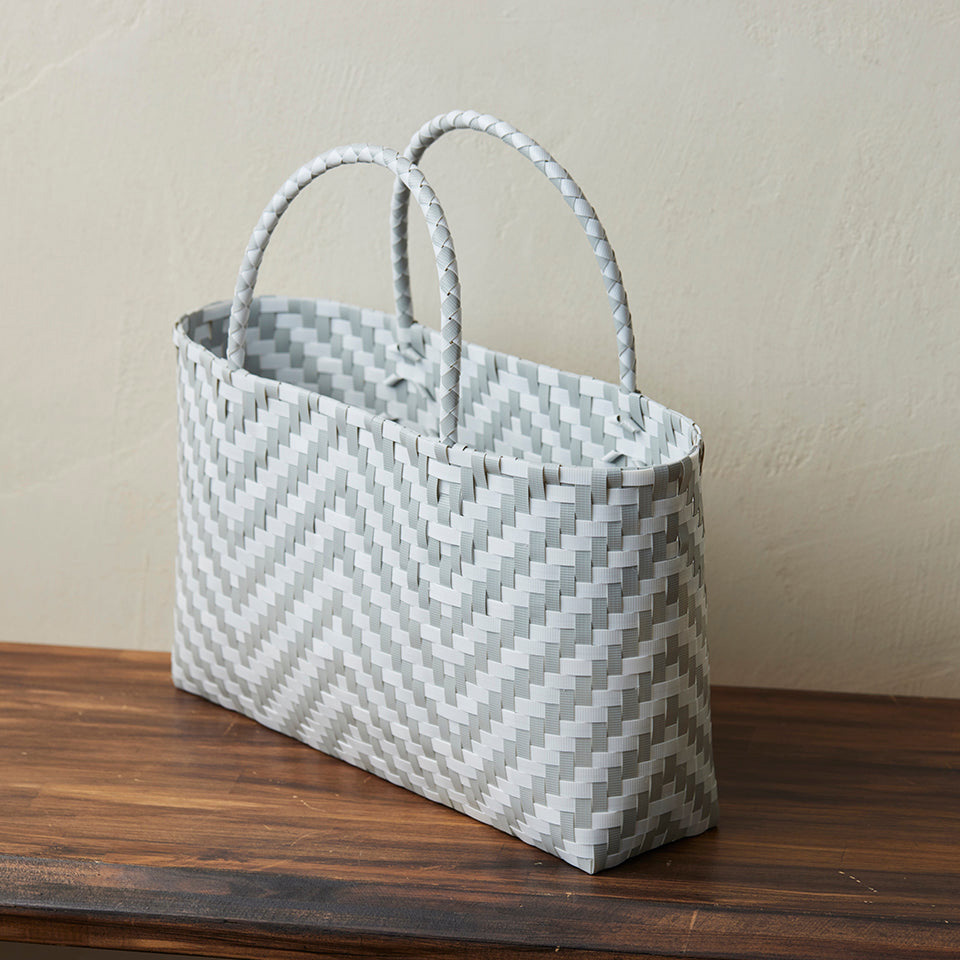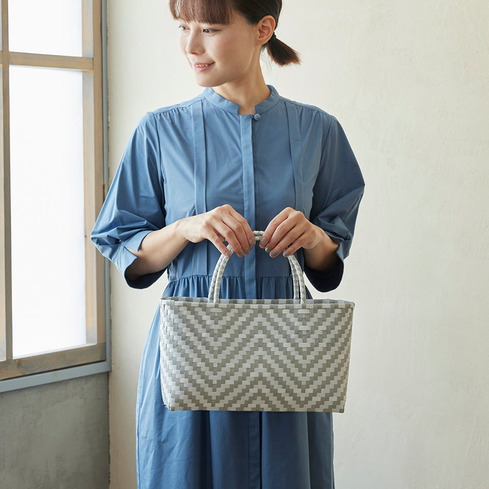 プラカゴテープの幅を1/2に割いて編んでいますので、繊細な模様に仕上がります。