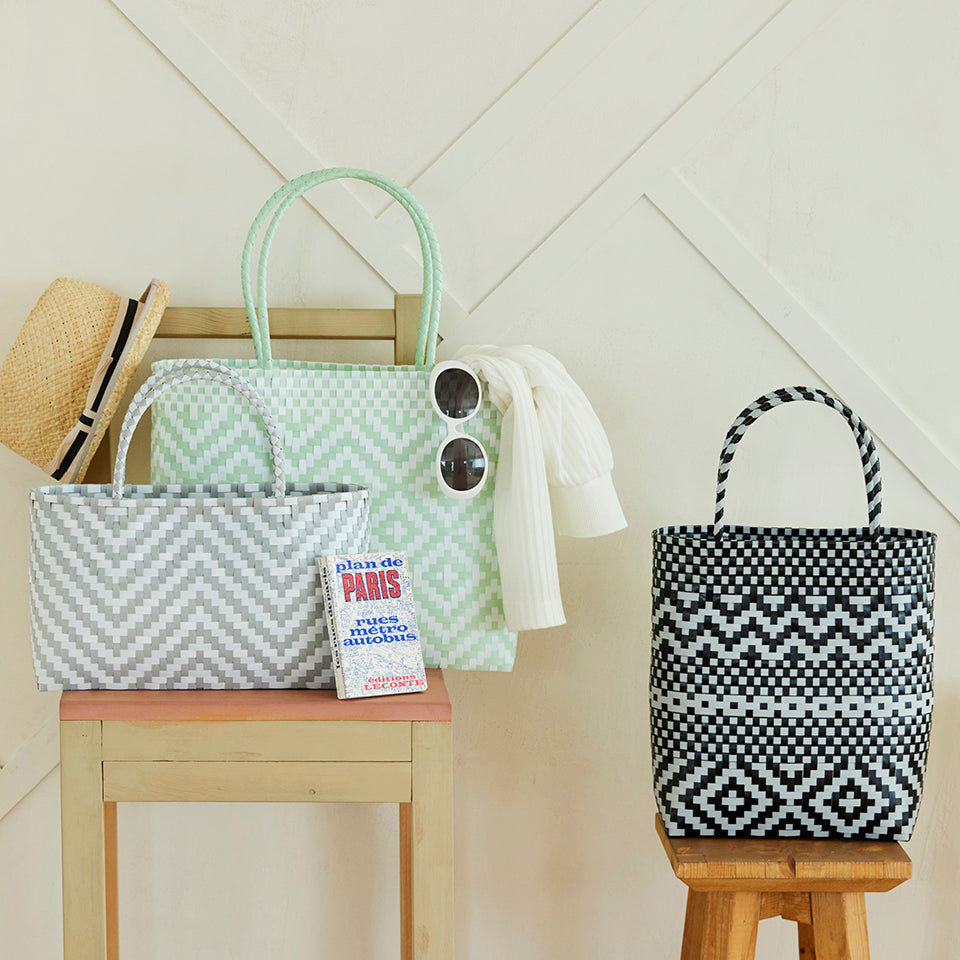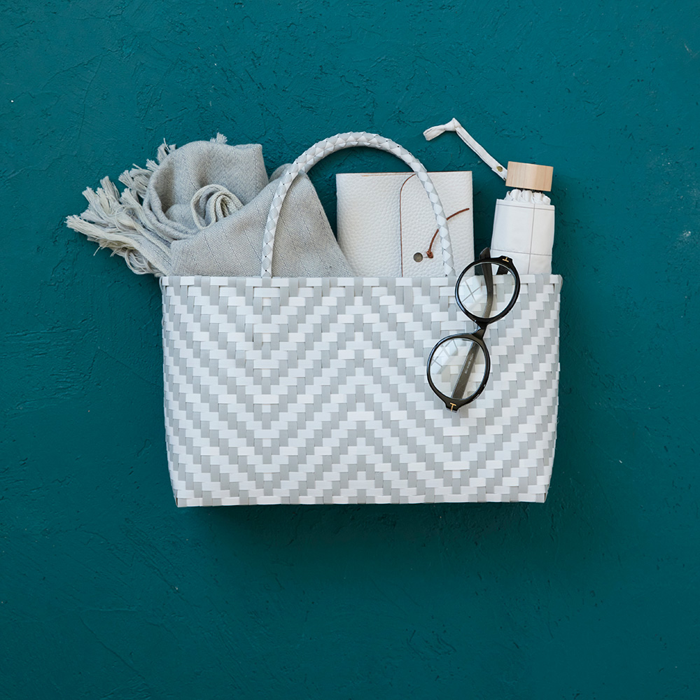 プラカゴテープはしなやかでとても編みやすい素材です。しっかりと編んでいくので強度もあって、水に濡れてもOK!