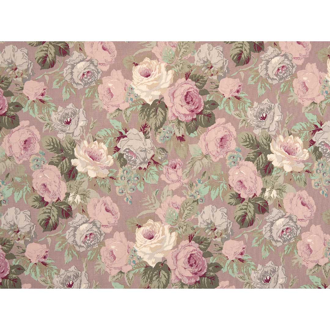 ややくすんだ紫地に、バラと小花を全面に敷きつめたクラシカルなプリント。大らかで優雅なタッチで、インテリアやファッションにナチュラルな美しさを添えます。