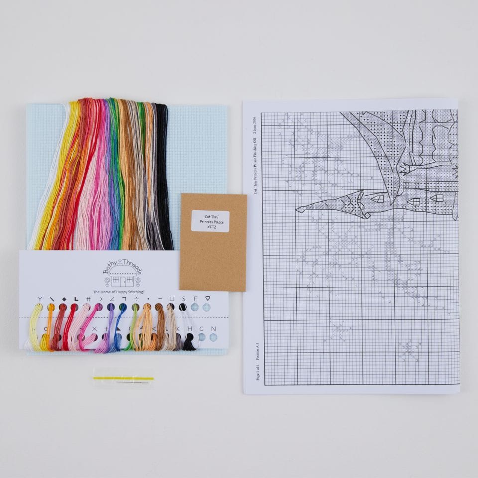 お城の中を緻密に描いた、楽しいクロスステッチ。日本語の説明書付きです。