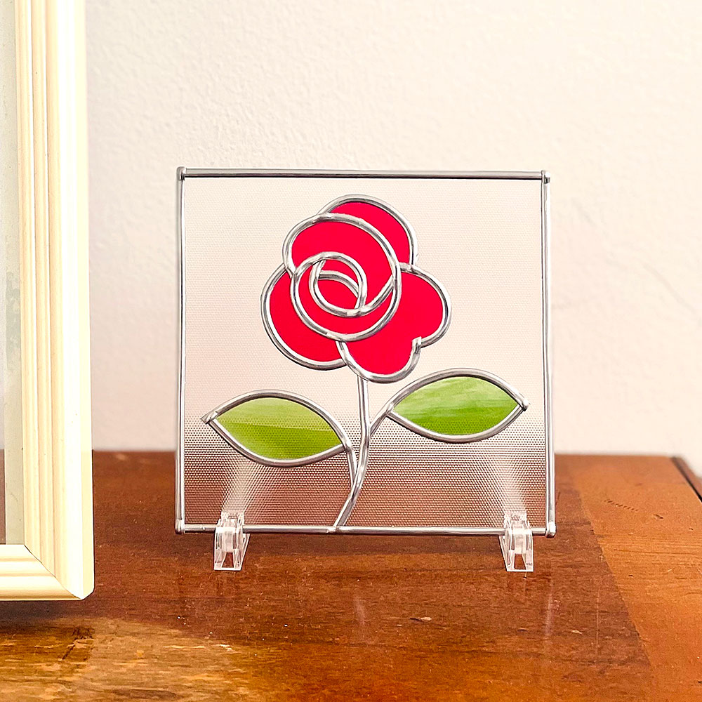 貼るだけで、手軽に憧れのステンドグラス風のインテリア雑貨がつくれるクラフトです。 ステンドグラスの雰囲気をそのままに、完成度の高い作品づくりを楽しめます。 土台となるガラスやアクリルに接着剤付きの鉛線でデザインを描き、特殊カラーフィルムを貼って彩色します。