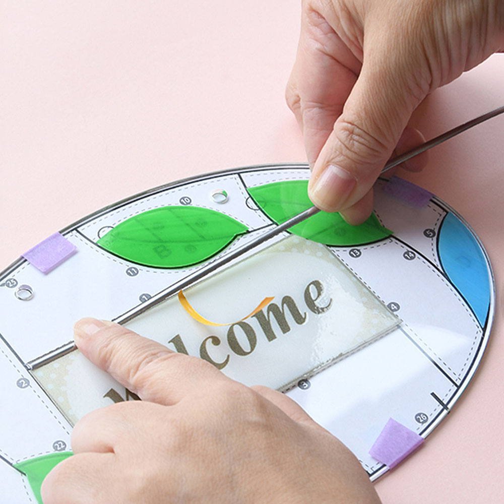 切って貼るだけで、本物のステンドグラスのような美しい色彩と光と影を楽しめる作品に仕上がります
