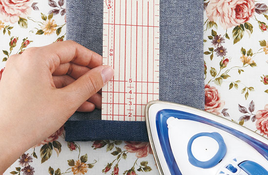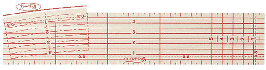 布の折り返し作業をラクにきれいに。裾上げや3つ折りなどに便利です。少し出っ張ったカーブ辺部分は、緩い曲線の折り返しに。