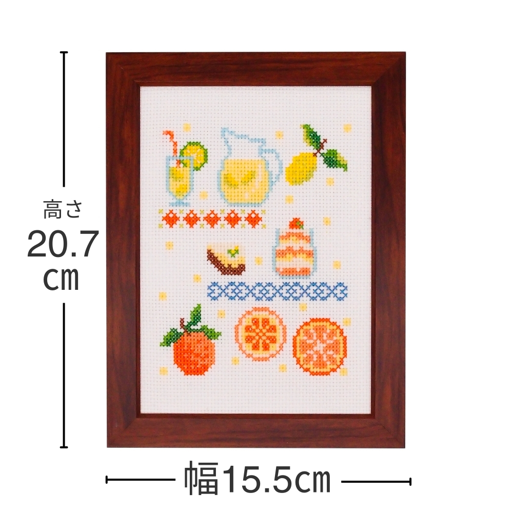 糸を交差させながら刺し進めるクロスステッチで作成します。刺しゅうが終わったら厚紙にテープで張り、付属の額に入れて飾りましょう。制作時間の目安は9時間程度です。