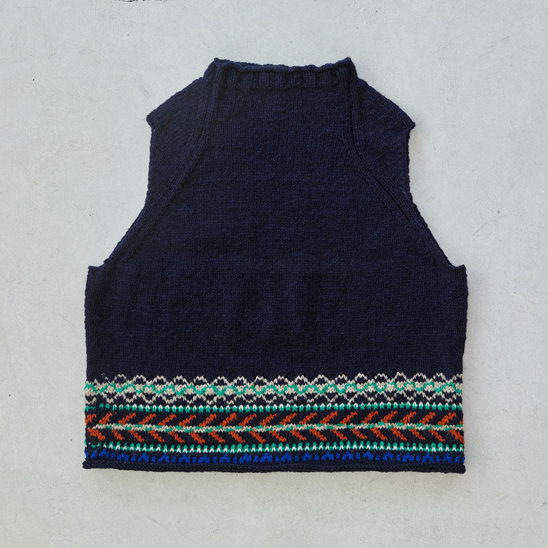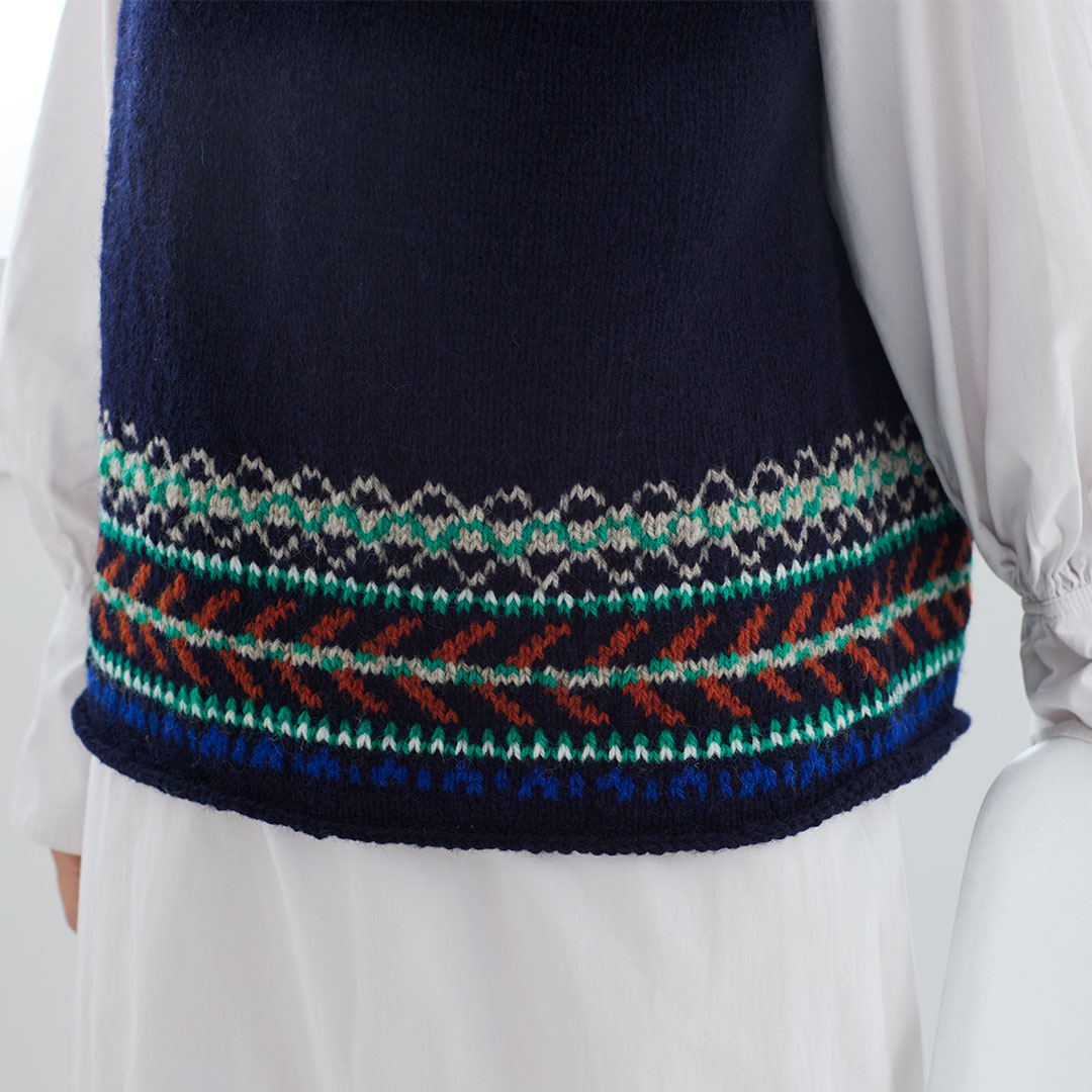 幾何学模様のフェアアイル柄を裾に編み込みました。