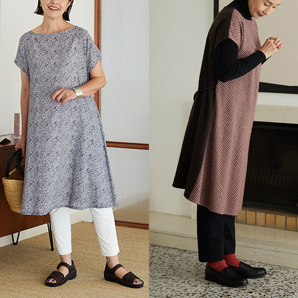 パタンナー丸山京子さんが主宰する人気型紙ショップ「かたがみスタイル」の約300型のデザインの中から、初心者さん向きのおすすめパターンを厳選セレクト。ブラウス、チュニック、ワンピース、パンツ、スカート、ジャケット、フード付きジレなど、新作・アレンジ作品を含む計16型、計25点を掲載。今回はMサイズモデルの他、LLサイズモデルの着用例も紹介。日暮里繊維街にある実店舗では、サンプルの試着もOK。S・M・L・LL・3L・一部SS・Vサイズの実物大型紙つき(縫い代つき)