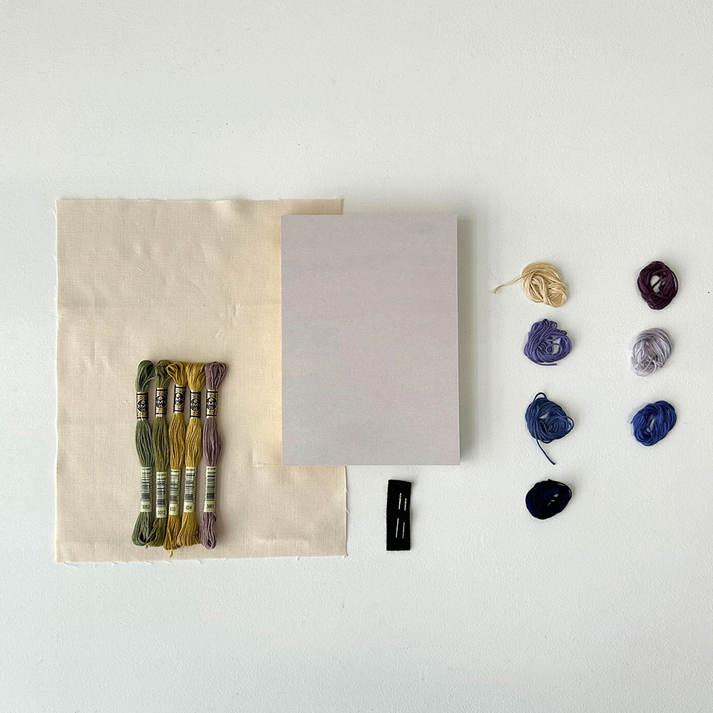 作り方説明書と刺しゅうの基本の他に、図案印刷済のトレーシングペーパーが入っています。図案が印刷されたトレーシングペーパーで、刺しゅう前の準備がひと手間省けます。