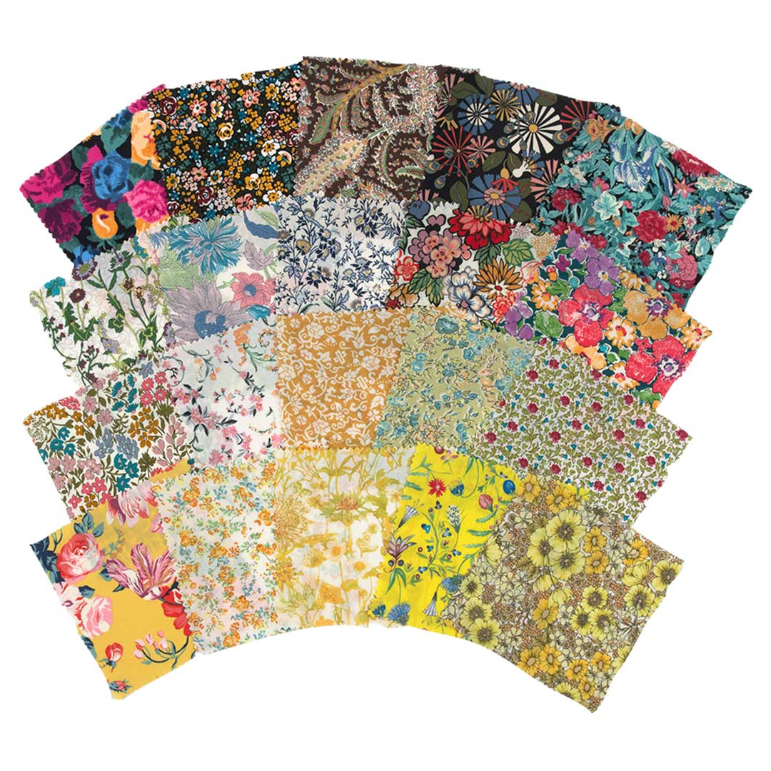しなやかで薄手のリバティ タナローンを小さいサイズのスワッチセットにしました。このまま四角つなぎにしても素敵です。色系統別のセットでお届けします。