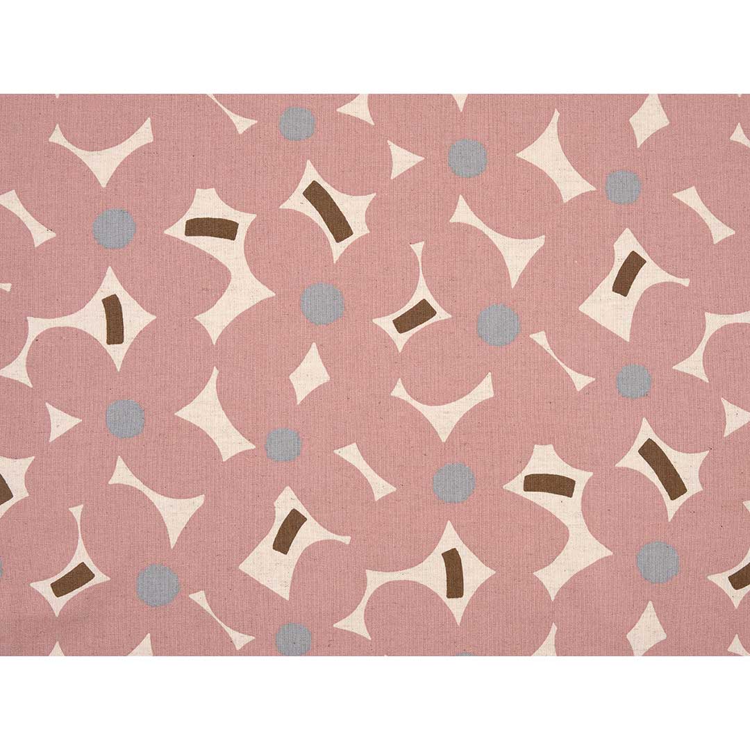 【綿麻キャンバス】やや厚手のキャンバス地。綿殻入りのナチュラルな綿麻地に、ややくすんだピンクの大きな花を描いた大柄布です。インテリアやバッグなどに。