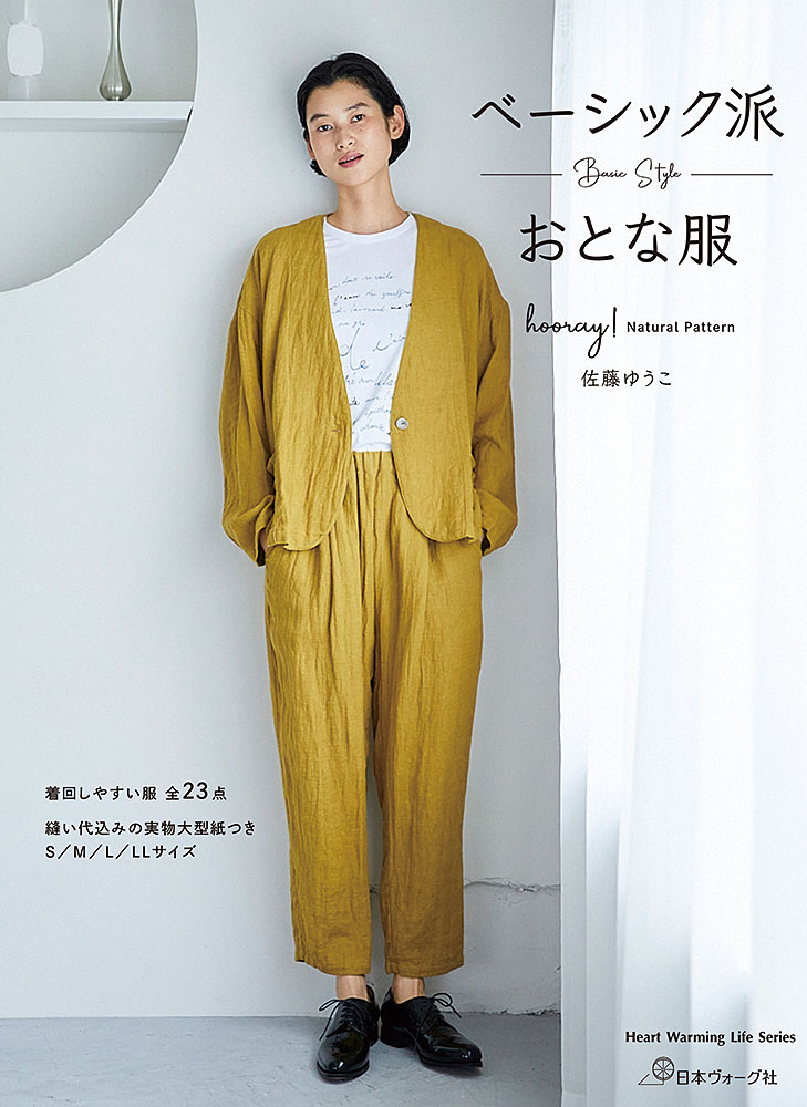 着やすいベーシックなナチュラル服をコンセプトにした人気の型紙ショップ「hooray!」の佐藤ゆうこさんはパタンナーとしての経験をいかし「きれいなパターンでシンプルなデザイン」をコンセプトにしたお洋服を提案。年齢層を選ばず着る人を引き立てる、いつもクローゼットに置きたいアイテムばかり。リネン、コットンなど一年中着られる素材でブラウス、ワンピース、パンツ、ベスト、ジャケット、コート、スカート、セットアップなど23点を掲載。S/M/L/LLの4サイズ展開。1つのパターンを袖や丈を変えて、衿をつけてなどアレンジも。便利な縫い代つき実物大型紙2枚つき。https://www.hooray-shop.com/
