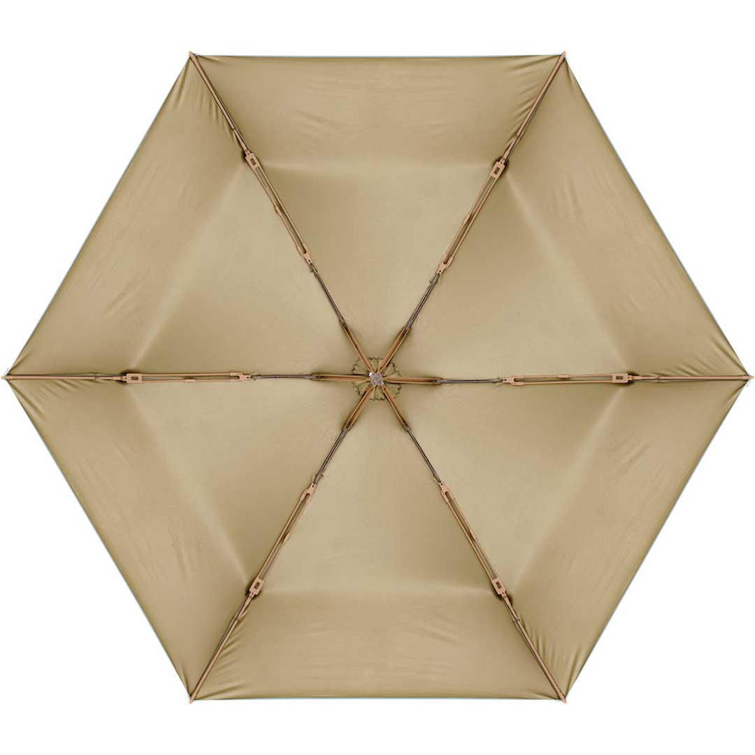 【完成品】にわか雨でも安心。アルミ製のシャフトとグラスファイバーを使った、晴雨兼用の軽量折り畳み傘。内側はゴールド調です。