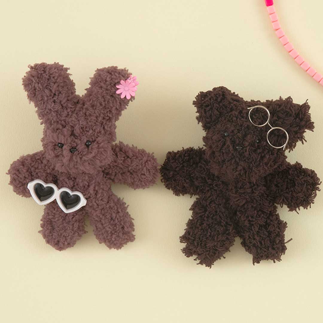 【キット作り方つき】もこもこモールワイヤーで作るクマ&ウサギのマスコットセットを、質感の違いで2種ご用意。折り曲げても簡単に元に戻るため、パーツを接着剤でつけるまで何度もやり直せます。