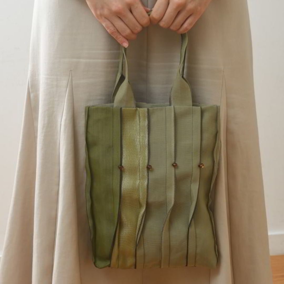 軽くて丈夫なたたみ縁のテープで作る、艶やかで美しいバッグ。