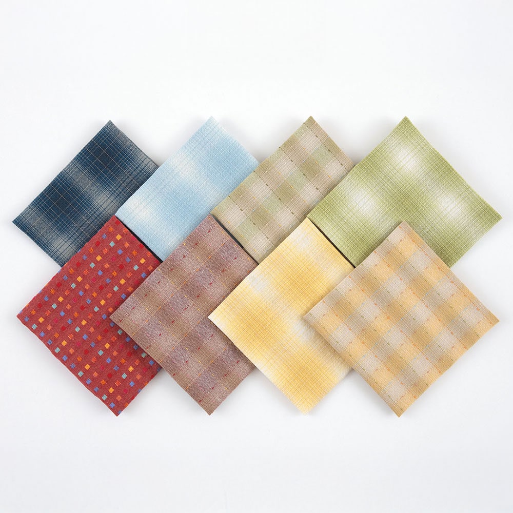花や葉などにも便利なピンク、グリーン、ブルーなどを組み合わせた、先染めクロスのセットです。小さめサイズでお届けします。