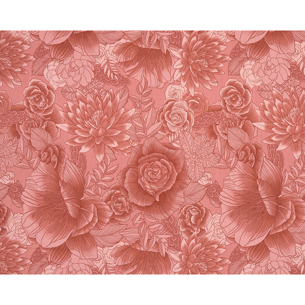 繊細な線で描いた動きのある花々を、立体感が出るボカシでプリントしました。裏布などにも。