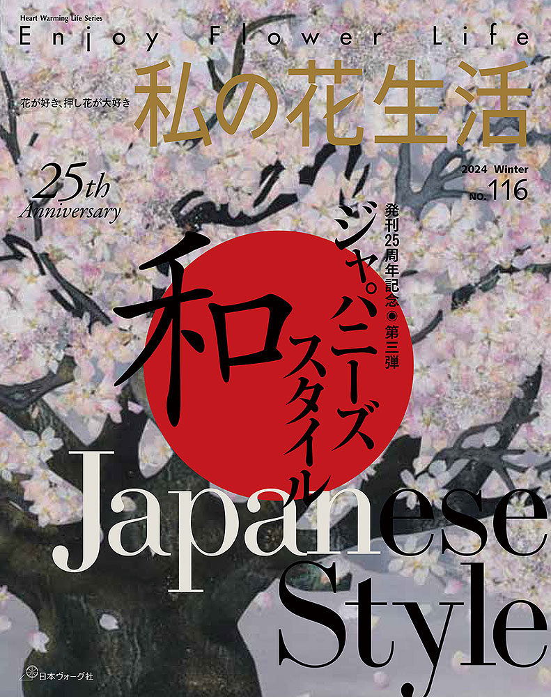 2024年私の花生活は創刊25周年を迎え、4月には「牧野標本と現代の作家たち」展を開催。創刊特集第3弾は「ジャパニーズ・スタイル和」と題し、押し花作家たちが考えるコンテンポラリーな大作を紹介します。さらに、会場でのレクチャーも好評だった東京都立大学・牧野標本館の加藤英寿氏が東京都の今後の植物プロジェクトを誌上で発表。押し花を愛する私たちにできることを提案します。北海道の平野を染める落ち葉や日本生まれの純正すみれなど、クオリティーの高い植物が誌面を飾ります。来年の干支のキュートなへびも続々と登場します。ビーズデコールの「ちひろシリーズ」、植物学者の探検記をはじめ、花の情報も満載しています。
