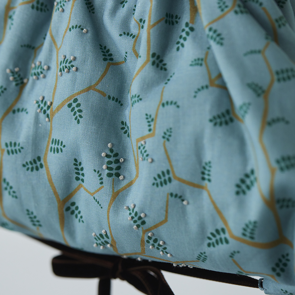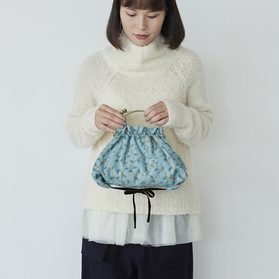 ジグザグに伸びた枝と小さな葉っぱがかわいい観葉植物(リトルベビー)をイメージした“little baby”のプリント柄のベンリー口金バッグのレッスンです。
